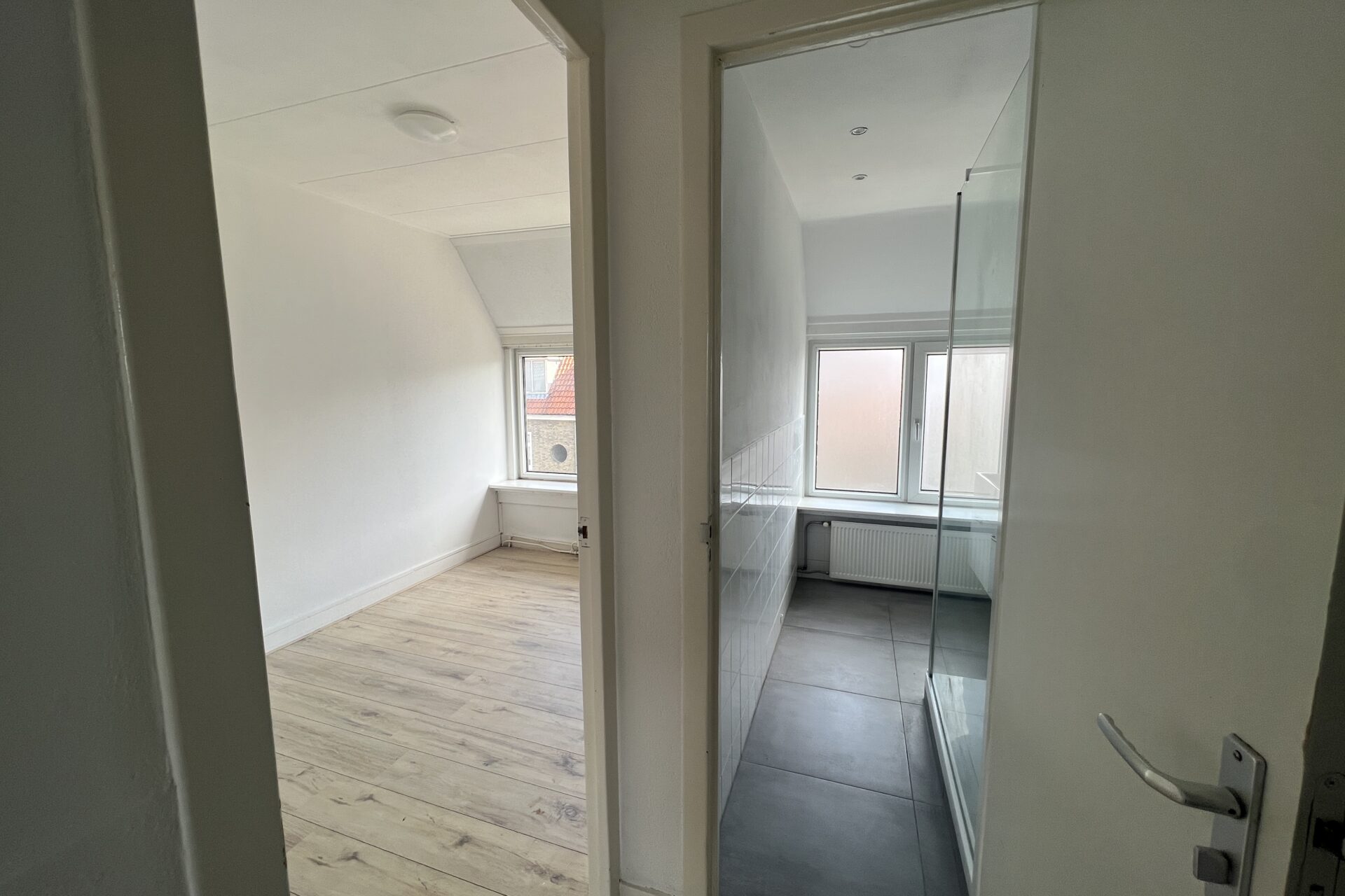 Het betreft een woning met drie verdiepingen. Op de 1e verdieping bevindt zich de riante woonkamer van 30 m2 met aansluitend de keuken. Deze verdieping is voor zowel aan de voorzijde en achterzijde voorzien van grote ramen wat zorgt voor veel lichtinval. Daarnaast is er aan de achterzijde een balkon. Op de 2de verdieping bevinden zich twee slaapkamers van 10 m2 en 11 m2, een apart toilet en een badkamer met ruime inloopdouche. Deze verdieping heeft iets extra’s, dat is namelijk het dakterras. Tot slot bevindt zich op de 3de verdieping een ruime slaapkamer/zolderruimte van 16 m2.